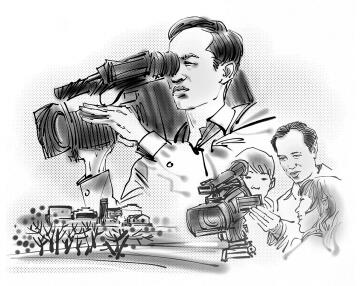为了拍摄电厂建设的全景画面,提着摄像机爬上12层楼高的塔架;为了拍摄晚点的农民工专列,在火车站一等就是一夜;为了拍摄抢险人员给洪水中的受灾群众送物资,差点挂上从船头掠过的高压线……拍摄的时候,摄像机放在地上、脚面上、膝盖上、腋下、肩膀上,蹲着、跪着、趴着、扎马步,各种动作姿势按拍摄需要而定。他常说:“新闻时时发生,只是视角不同。”